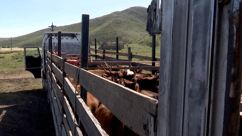 Погрузка коров калмыцкой породы в грузовики в Кяхтинском районе. К слову, на заднем плане видна сухая, выжженная от засухи земля